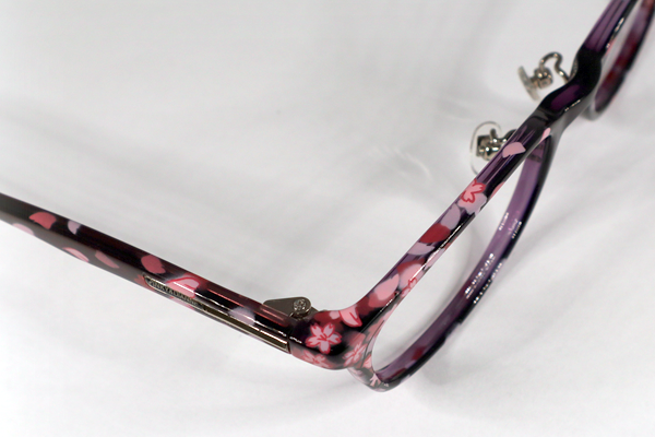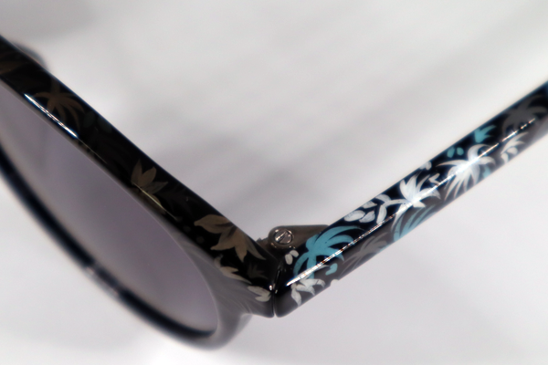 テンプル先端まで葉の一枚一枚がフリーハンド描かれ、こちらもアシンメトリーで作られた、手の込んだ作品です。