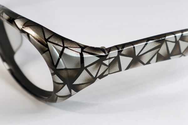 職人さんも「次回は増額でお願いします」と唸るほど手の込んだ作品は、どこに行っても類を見ない、クールなジオメトリックパターン こだわりのめがねになりました。