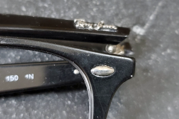 そして左レンズには、中央外側にRay-Banの頭文字、RBを縦に並べた掘りが見えます。